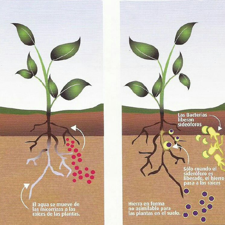 La capacità di chelare ferro, diminuendo così il suo contenuto nel suolo è alla base dei meccanismi che portano incrementi di crescita nelle piante da parte di P. Fluorescens e P .putida. Tali specie colonizzano l’apparato radicale della pianta sequestrando forti quantità di ferro e inibendo la possibilità di crescita a specie dannose per la pianta.