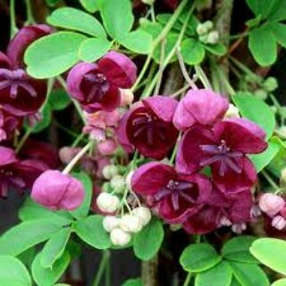 Grazioso rampicante legnoso, assai vigoroso, capace di coprire rapidamente tronchi d’albero, tralicci, muri. Ha foglie digitate composte da 5 foglioline ovate e curiosi fiori rosso-purpureo che danno grossi frutti eduli, succosi ed aciduli.