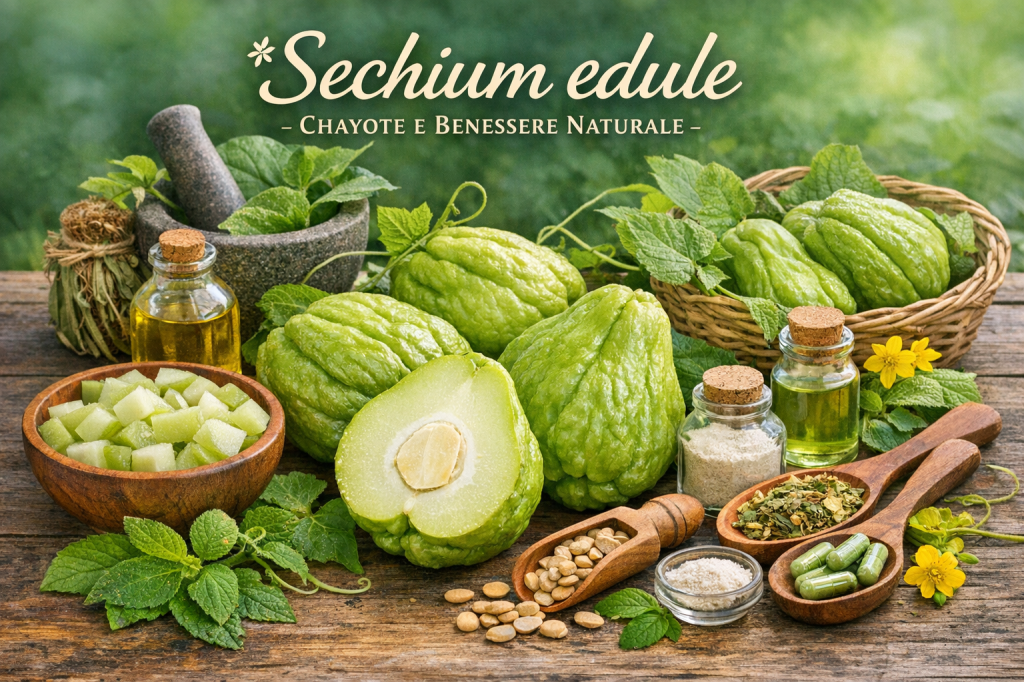 Il Sechium edule, noto anche come chayote, zucca centenaria o zucchina spinosa, è una pianta appartenente alla famiglia delle Cucurbitaceae, la stessa di zucche, zucchine e cetrioli. Originario dell’America Centrale, in particolare delle regioni tra Messico e Guatemala, oggi è coltivato in molte aree tropicali e subtropicali del mondo, compreso il bacino del Mediterraneo. Negli ultimi anni, l’interesse verso questa pianta è cresciuto non solo per il suo valore nutrizionale, ma anche per le sue potenziali applicazioni nel campo della salute e del benessere.