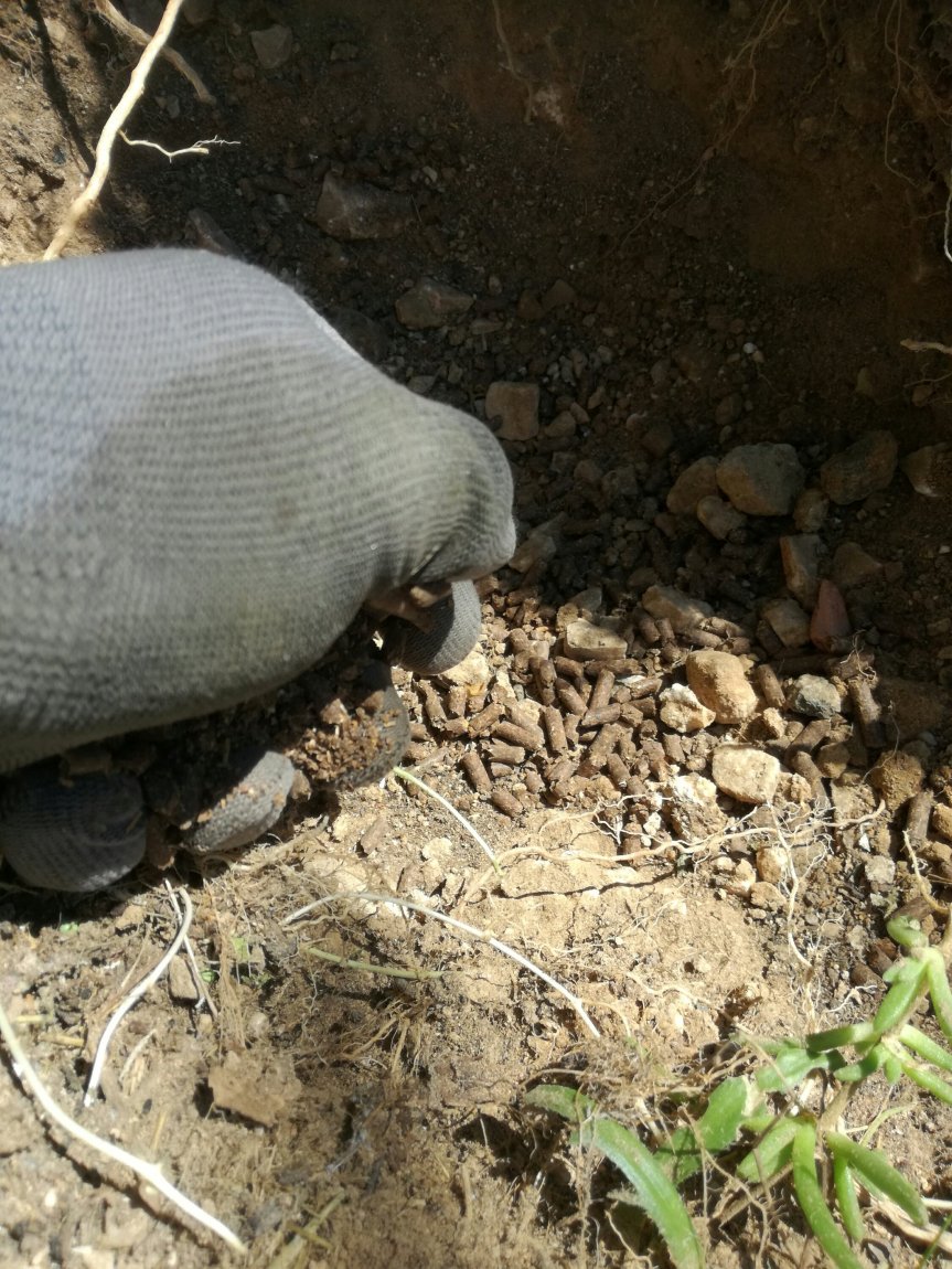 – letame in pellet pretrattato con Microrganismi nella buca;
