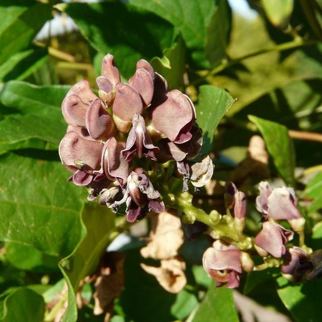 È un rampicante originario dell’America orientale che arriva a 3 metri, annuale con tuberi perenni. Fiori profumati di color viola-rosso e baccelli contenenti semi eduli.