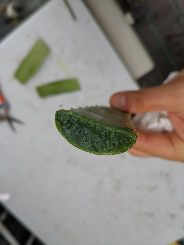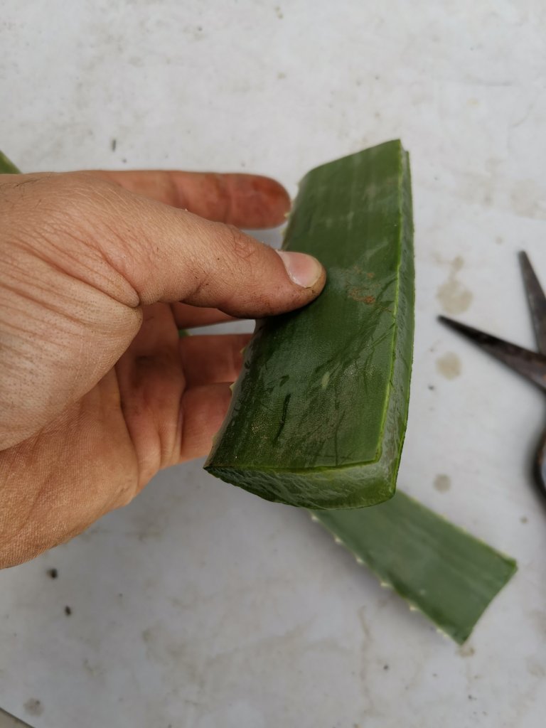 - prendere una foglia basale di almeno 40 cm da una pianta di aloe vera che abbia almeno 4 anni