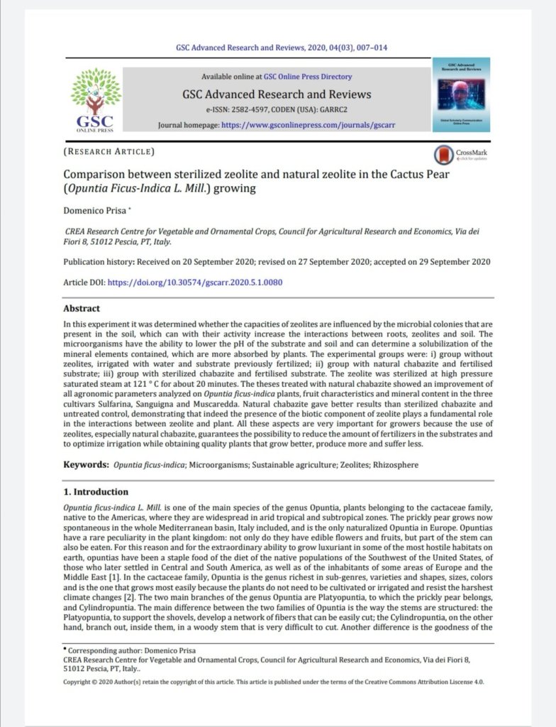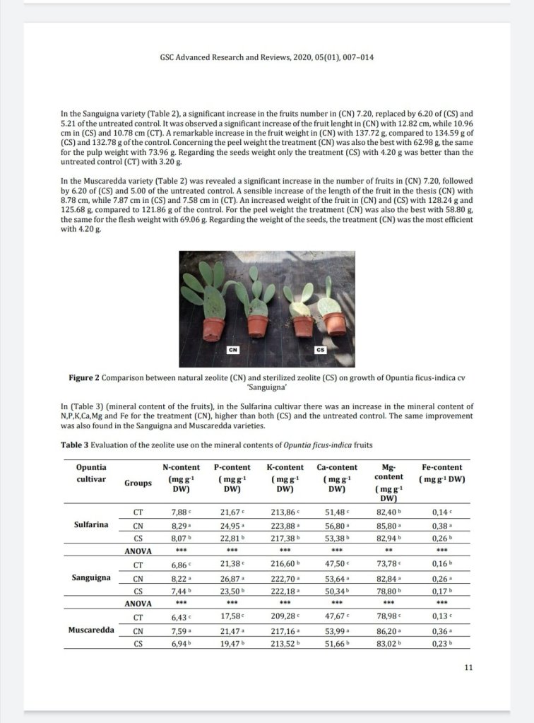 Valutazione del confronto fra zeolitite naturale e zeolitite sterilizzata su Opuntia Ficus indica