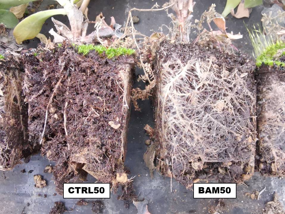 Abstract: In this work, the biostimulant and biocontrol capacity of Bacillus amyloliquefaciens in succulent plants such as Aeonium was evaluated. The specific objectives were in particular: (i) Evaluate whether the use of this bacterium can increase the growth rate of Aeonium plants that typically have a slow growth cycle; (ii) evaluate if the use of B. amyloliquefaciens can lead to increased plant resistance to Fusarium oxysporum; (iii) considered if utilization of B. amyloliquefaciens allows for increased plant resistance to water and nutrient stress. The experimentation showed a significant improvement of the agronomic parameters analyzed on all Aeonium plants treated with Bacillus amyloliquefaciens. In general there was a significant increase in plant height, number of leaves, vegetative and root weight, number of new shoots. In addition, Aeonium goochiae and sunburst show a better protection against the fungus Fusarium oxysporum. The trial also highlighted the ability of B. amyloliquefaciens to guarantee a productive and qualitative production of the plants even under conditions of reduced water and nutritional resources. Plants, thanks to the interaction with soil microorganisms, can reach higher nutrient and water resources, resulting in greater resistance to abiotic stresses and better quality in the cultivation cycle.