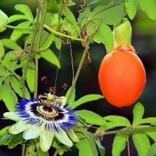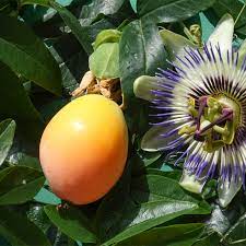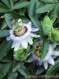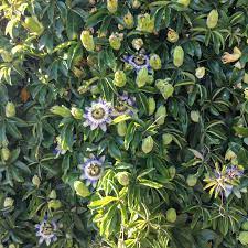 Delle numerose specie conosciute, la più comune e anche la più rustica, che per quanto originaria delle regioni subtropicali del sud America, si è ottimamente acclimatata in Italia anche in zone a clima temperato-freddo. E’ una pianta rampicante di rapidissima crescita e di grande sviluppo, con ramificazioni lunghe fino a 10 mt e provviste di viticci per mezzo dei quali aderisce facilmente a qualsiasi sostegno; viene apprezzata per le foglie composte, persistenti, di un bel verde vivo e lucenti, ma soprattutto per i caratteristici e grandi fiori di colore bianco-verdognolo ingentiliti da numerosi filamenti azzurro-bluastri (è conosciuta come fiore della passione, perchè i tre stili somigliano a chiodi, gli stami a martelli, e le corone a spine, oggetti appunto che ricordano la crocefissione).