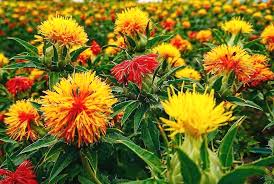 Il vero zafferano è il Crocus sativus , sovente si coltiva con il nome improprio di zafferano una pianta ben diversa che appartiene alla famiglia delle Compositae. Si tratta del cartamo che è conosciuto come zafferanone o falso zafferano; è una pianta eretta ben ramificata e alta fino a 1 mt., molto simile per la forma e portamento dei capolini al fiordaliso con la differenza che i singoli fiori sono di un bel colore aranciato. E’ una pianta erbacea annuale di crescita abbastanza rapida e molto fiorifera; la fioritura si prolunga per tutta l’estate e quando i fiori dei capolini sono ormai appassiti prendono un colore arancione scuro che ricorda quello del vero zafferano. Il cartamo o zafferanone si può utilizzare in sostituzione del vero zafferano, come aromatizzante e colorante in cucina e anche per altri scopi; dai semi si può estrarre un olio che ha proprietà medicinali al pari dei fiori che in ogni caso si raccolgono quando sono ormai appassiti.