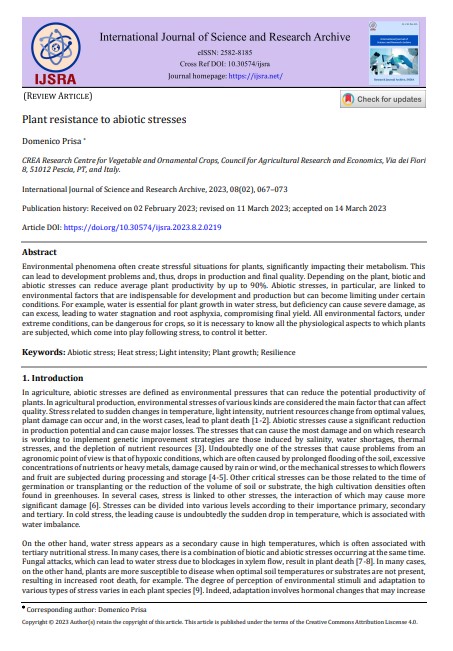 Environmental phenomena often create stressful situations for plants, significantly impacting their metabolism. This can lead to development problems and, thus, drops in production and final quality. Depending on the plant, biotic and abiotic stresses can reduce average plant productivity by up to 90%. Abiotic stresses, in particular, are linked to environmental factors that are indispensable for development and production but can become limiting under certain conditions. For example, water is essential for plant growth in water stress, but deficiency can cause severe damage, as can excess, leading to water stagnation and root asphyxia, compromising final yield. All environmental factors, under extreme conditions, can be dangerous for crops, so it is necessary to know all the physiological aspects to which plants are subjected, which come into play following stress, to control it better.