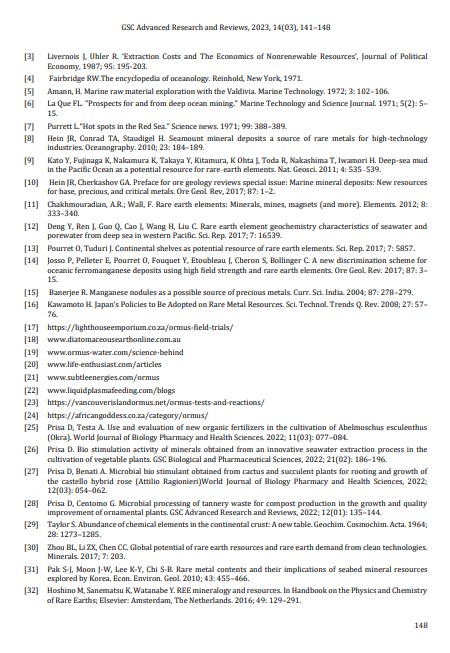 Seawater minerals; Microorganisms; Marine recycled water; Biofertilizers; Ormus