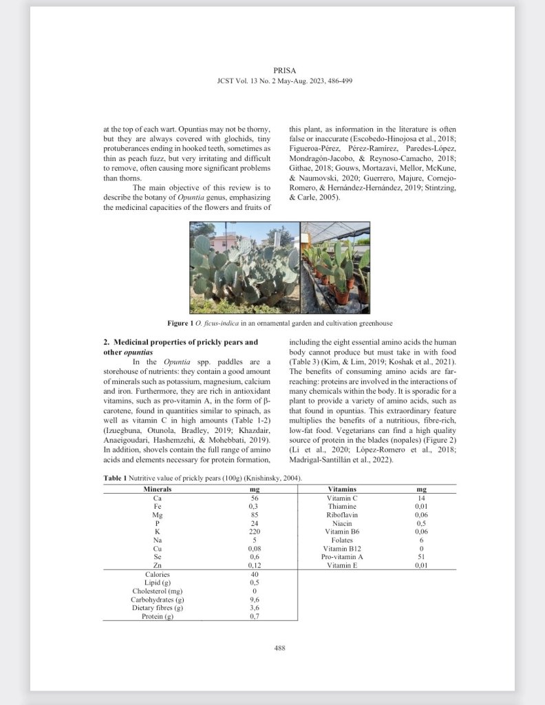 Titolo: Opuntia plants nutritive and medicinal value: a review