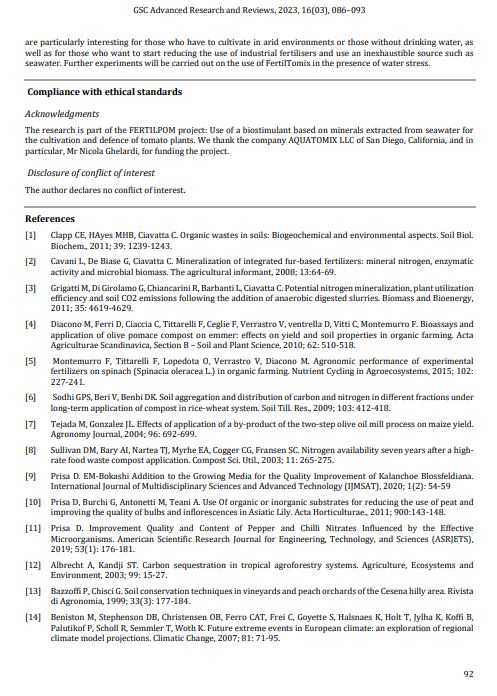 Conclusions: The test demonstrated a significant effect on plant growth after the application of certain extracts obtained from an innovative process of extracting minerals from seawater. In addition, it emerged that the product could also be used for plant protection when enriched with silver. This product would be very useful especially in countries where water resources and fertilisers are scarce, with the possibility of producing them on site through innovative facilities.