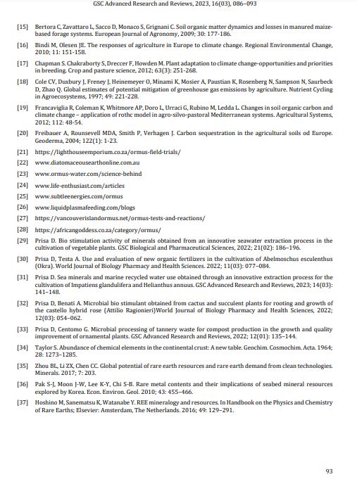 Seawater minerals; Microorganisms; Silver; Biofertilisers; Ormus