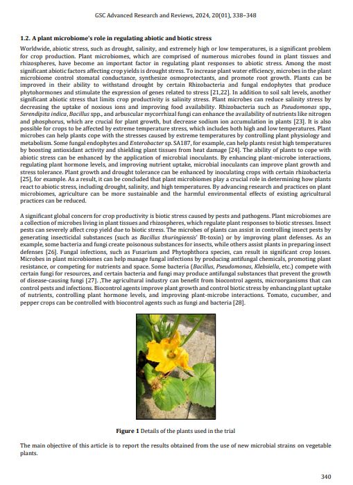 Research objective: The main objective of this article is to report the results obtained from the use of new microbial strains on vegetable plants. In particular, the article will deal with two important topics: i) the study of the effect of microorganisms on the biomass of vegetable plants; ii) the possible control of mortality due to diseases such as powdery mildew and Cladosporiosis. The information reported in this research work can support the design of cropping systems in which agricultural sustainability is fundamental due to the presence of microorganisms with biostimulating activity and as a possible alternative to synthetic plant protection products.