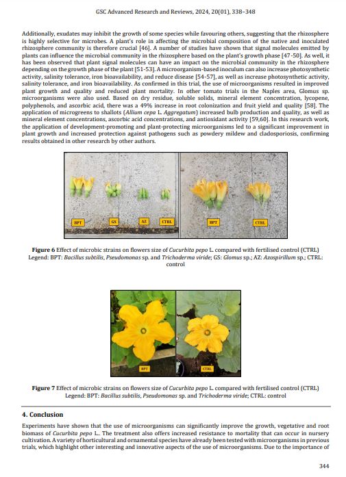 Conclusions: Experiments have shown that the use of microorganisms can significantly improve the growth, vegetative and root biomass of Cucurbita pepo L.. The treatment also offers increased resistance to mortality that can occur in nursery cultivation. A variety of horticultural and ornamental species have already been tested with microorganisms in previous trials, which highlight other interesting and innovative aspects of the use of microorganisms. Due to the importance of using microbial inoculums in plants, the new agricultural experiments are extremely important as they may allow the development of new products for organic and sustainable farming systems and lead to better results.