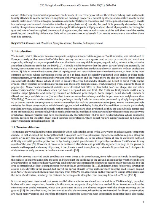 Corroborant; Zeolitites; Spray treatment; Tomato; Soil improvement