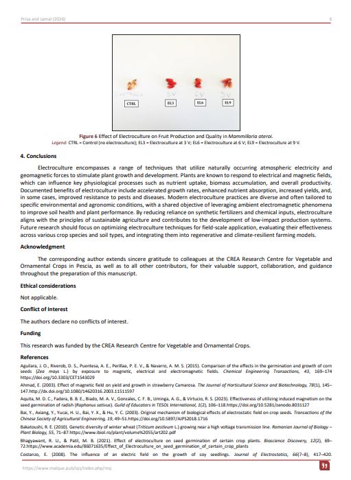 Bhagyawant, R. U., & Patil, M. B. (2021). Effect of electroculture on seed germination of certain crop plants. Bioscience Discovery, 12(2), 69–72.https://www.academia.edu/86071635/Effect_of_Electroculture_on_seed_germination_of_certain_crop_plants