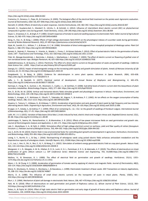 Bhagyawant, R. U., & Patil, M. B. (2021). Effect of electroculture on seed germination of certain crop plants. Bioscience Discovery, 12(2), 69–72.https://www.academia.edu/86071635/Effect_of_Electroculture_on_seed_germination_of_certain_crop_plants