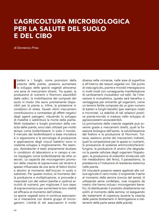 • L’AGRICOLTURA MICROBIOLOGICA PER LA SALUTE DEL SUOLO E DEL CIBO