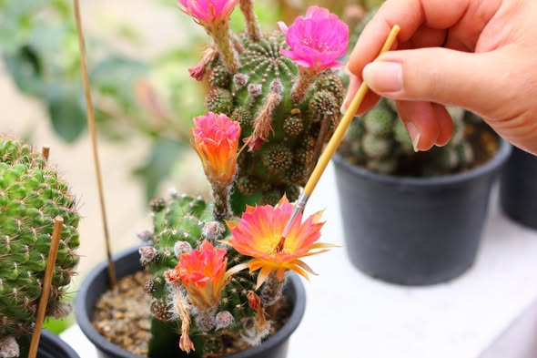 In natura, l’ibridazione può avvenire quando specie diverse crescono vicine e vengono impollinate dagli stessi insetti o animali impollinatori. Il processo può anche essere replicato in coltivazione tramite impollinazione manuale: si raccoglie il polline da un cactus fiorito e lo si trasferisce sullo stigma di un altro.