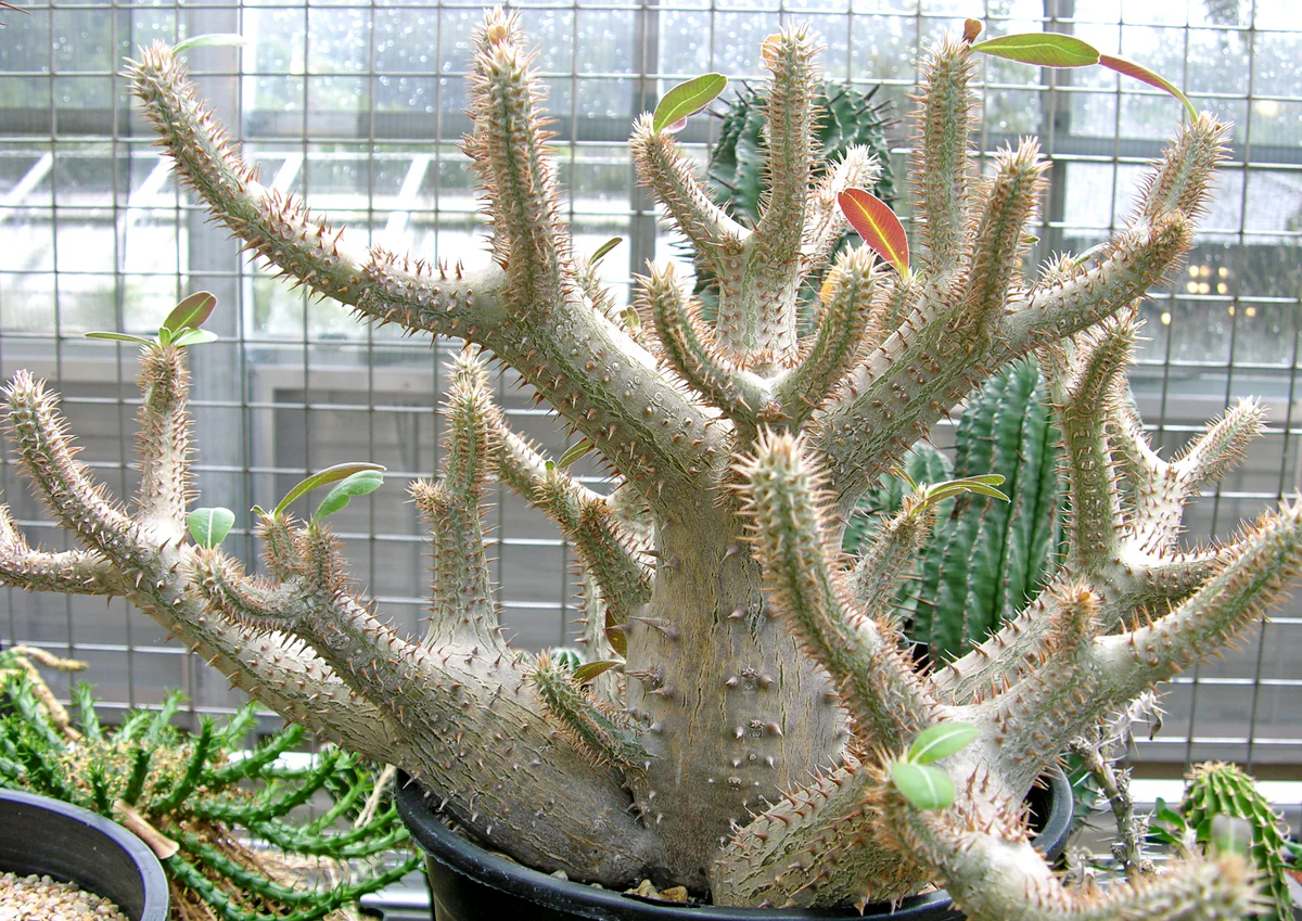 Il secondo insegnamento riguarda la riduzione delle perdite. Le succulente hanno superfici protette da cuticole cerose, foglie compatte e spesso ridotte, che limitano l’evaporazione. Molte trasformano le foglie in spine o le rendono minuscole. Non è povertà strutturale, ma ottimizzazione: meno superficie esposta significa meno stress termico e idrico.