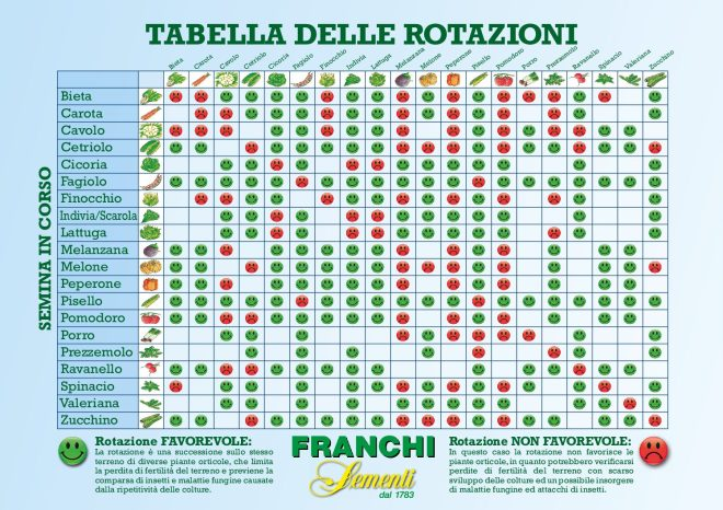 La rotazione consiste nel cambiare famiglia botanica coltivata in una stessa aiuola da un anno all’altro.