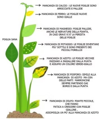 L’ingiallimento può indicare carenze di ferro, magnesio o altri microelementi, non solo di azoto.