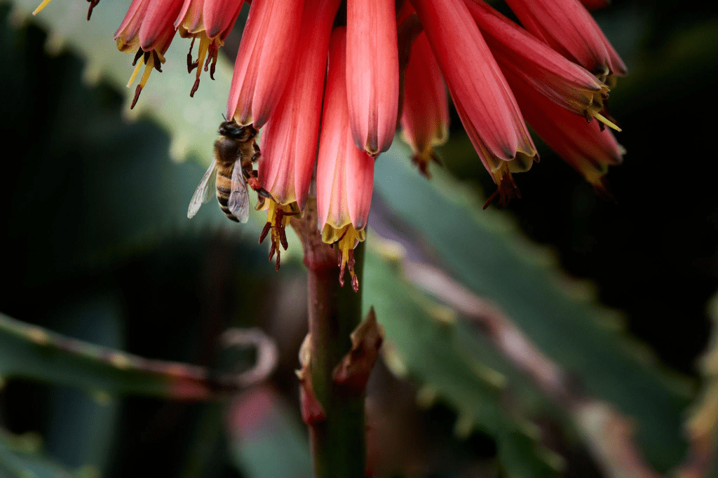 Le api sono tra i più comuni impollinatori dei cactus e delle succulente, specialmente durante il giorno. Sono attratte dal nettare zuccherino e dal polline e, grazie alla loro struttura pelosa, trasferiscono efficacemente il polline quando passano da un fiore all’altro.