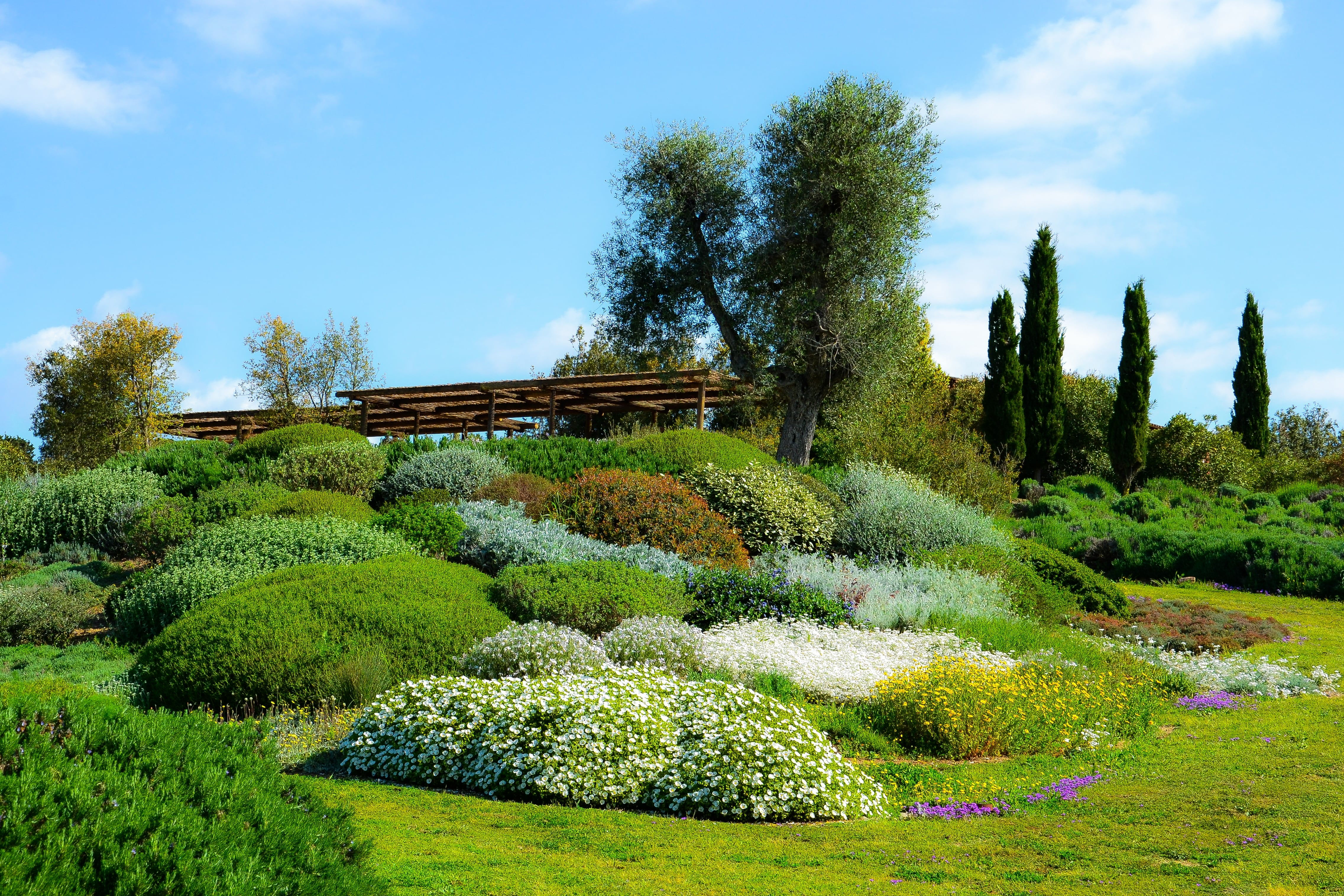 Il punto di partenza è il suolo. Nei climi aridi il problema non è solo la mancanza d’acqua, ma la sua rapida perdita. Suoli nudi, compatti o poveri di sostanza organica evaporano in poche ore. Proteggere il terreno è quindi fondamentale. La pacciamatura – organica o minerale – non è un’opzione, ma una necessità. Riduce l’evaporazione, abbassa la temperatura del suolo e mantiene attiva la vita microbica, che a sua volta migliora la struttura del terreno.