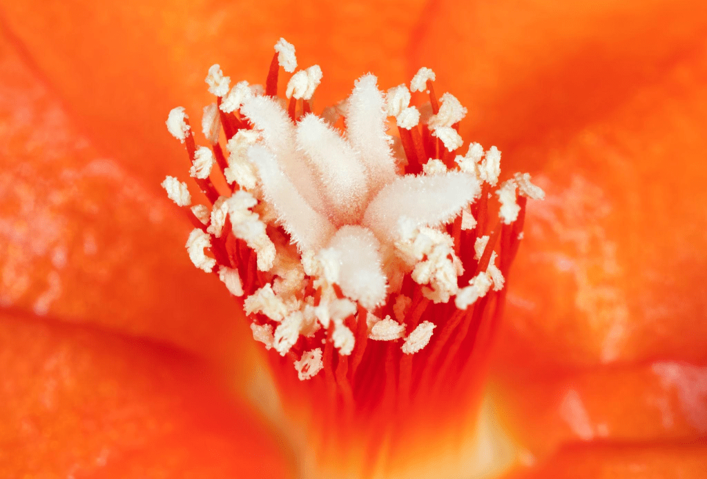 L’ovario contiene gli ovuli, che una volta fecondati diventeranno semi. In molte specie, come il Carnegiea gigantea (saguaro), i fiori si aprono solo per una notte o per poche ore, sincronizzando la fase riproduttiva con l’attività degli impollinatori notturni.